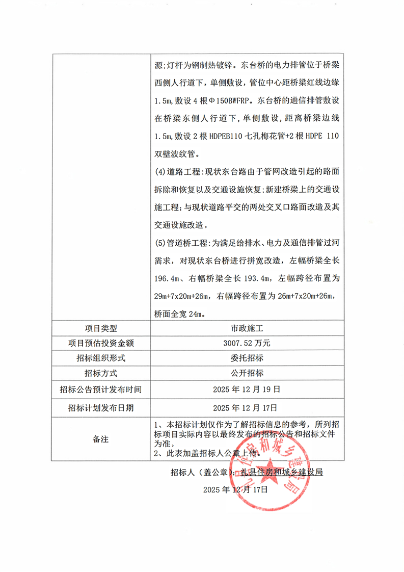 禮縣東臺路綜合管網更新改造項目(一期)工程