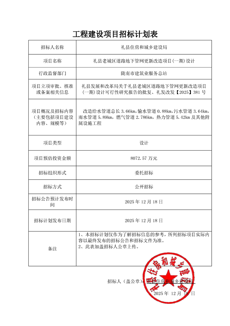 禮縣老城區(qū)道路地下管網(wǎng)更新改造項目(一期)設(shè)計