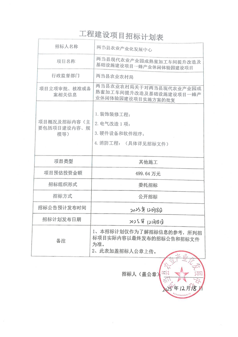 兩當(dāng)縣現(xiàn)代農(nóng)業(yè)產(chǎn)業(yè)園成熟蜜加工車(chē)間提升改造及基礎(chǔ)設(shè)施建設(shè)項(xiàng)目一蜂產(chǎn)業(yè)休閑體驗(yàn)園建設(shè)項(xiàng)目
