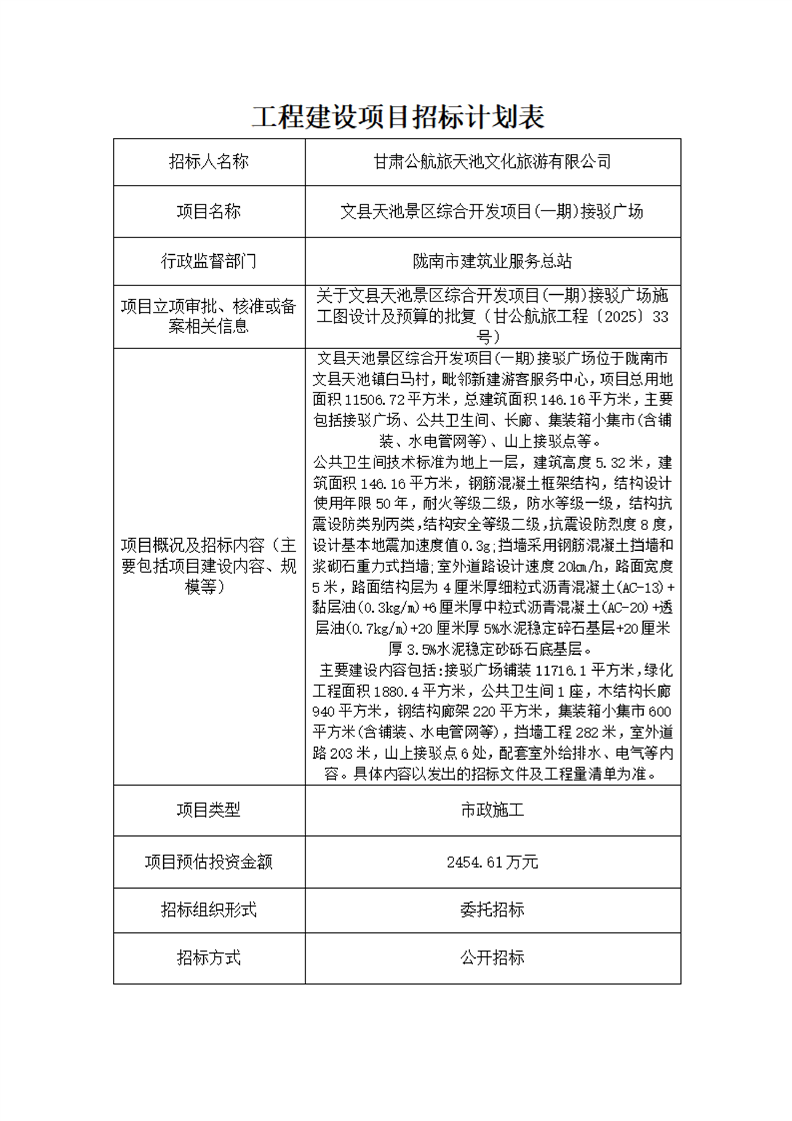 文縣天池景區(qū)綜合開發(fā)項目(一期)接駁廣場