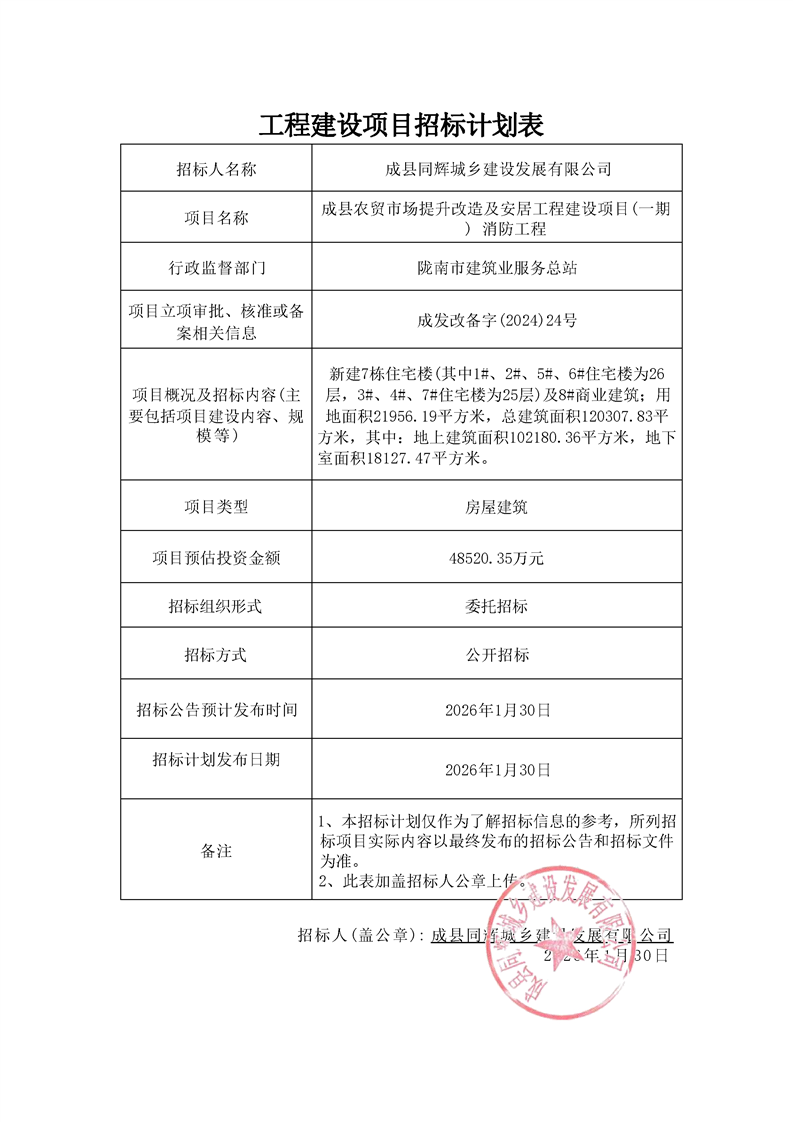成縣農(nóng)貿(mào)市場提升改造及安居工程建設(shè)項目(一期) 消防工程