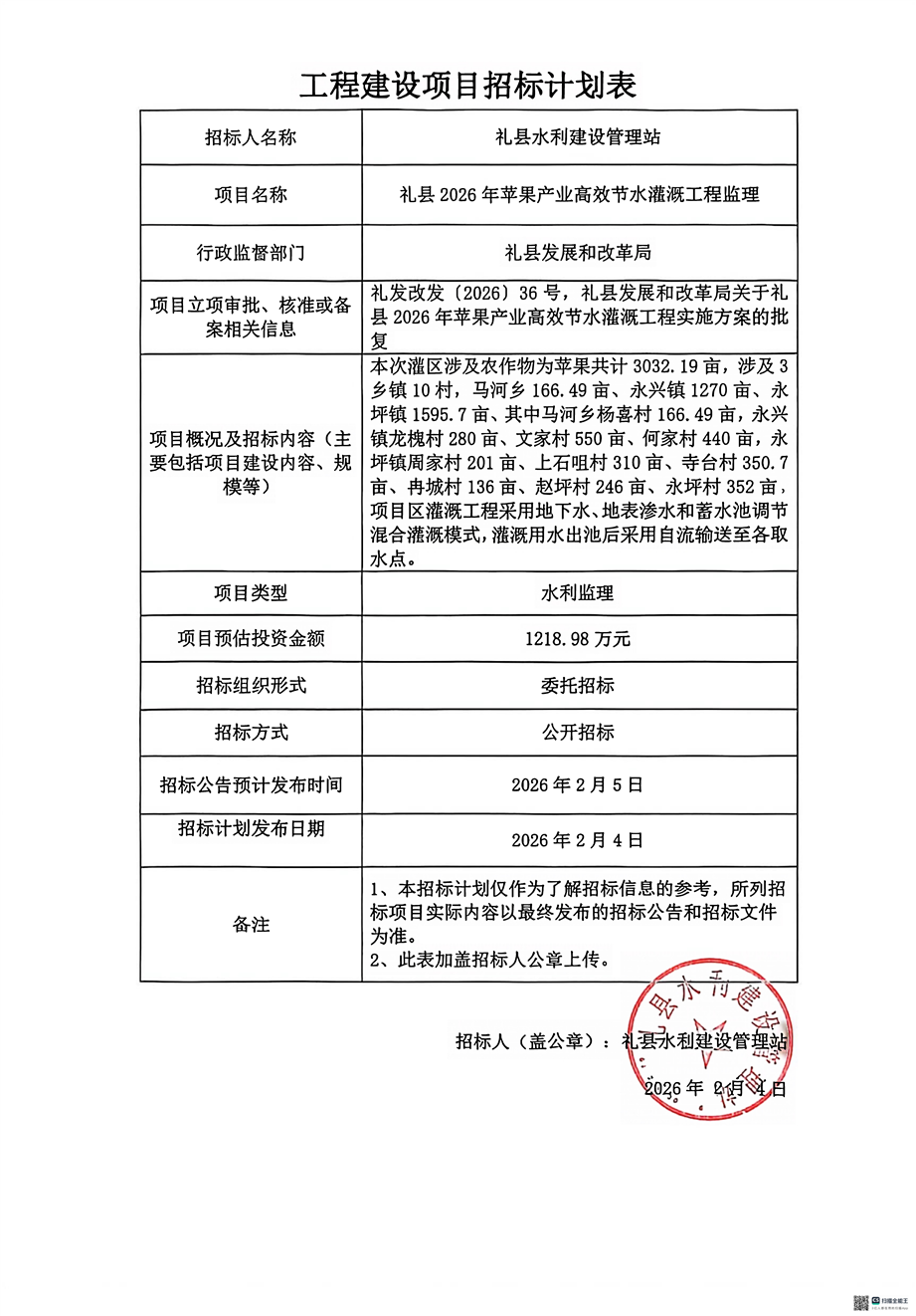 禮縣2026年蘋果產(chǎn)業(yè)高效節(jié)水灌溉工程監(jiān)理