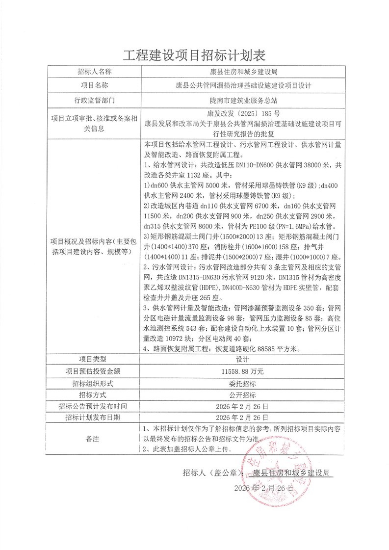 康縣公共管網(wǎng)漏損治理基礎(chǔ)設(shè)施建設(shè)項目設(shè)計