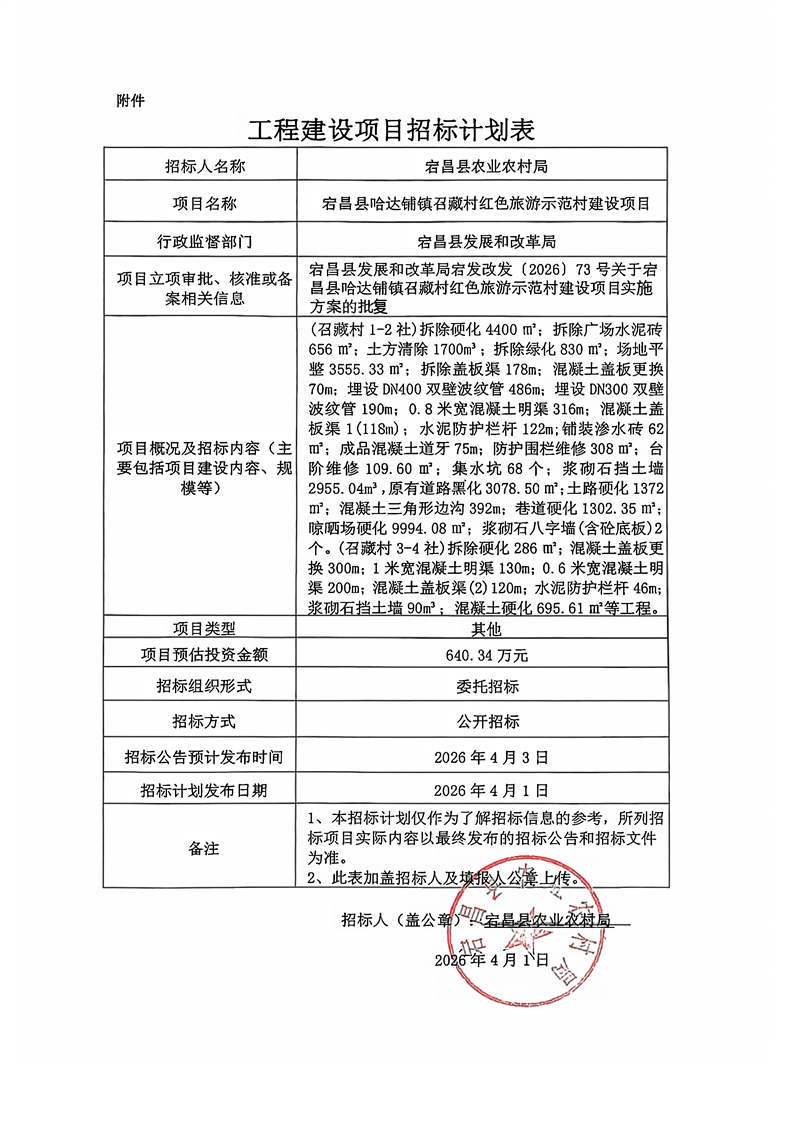 宕昌縣哈達鋪鎮(zhèn)召藏村紅色旅游示范村建設項目