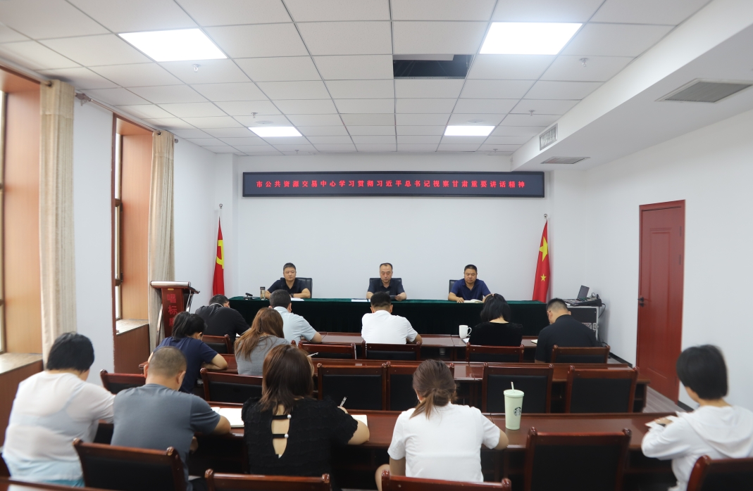 9月19日,隴南市公共資源交易中心召開全體干部職工會議,傳達學(xué)習(xí)習(xí)近平總書記在視察甘肅時的重要講話和指示精神、在全面推動黃河流域生態(tài)保護和高質(zhì)量發(fā)展座談會上的重要講話精神,學(xué)習(xí)市委常委會(擴大)會議精神,研究部署貫徹落實意見。黨組書記、主任張巍主持會議并講話。