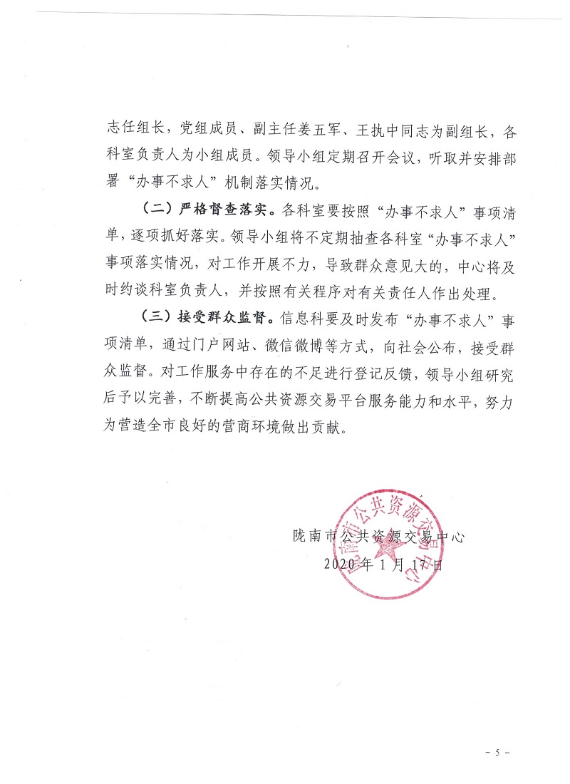 隴南市公共資源交易中心關(guān)于加快建立“辦事不求人”機制深化“放管服”改革的通知
